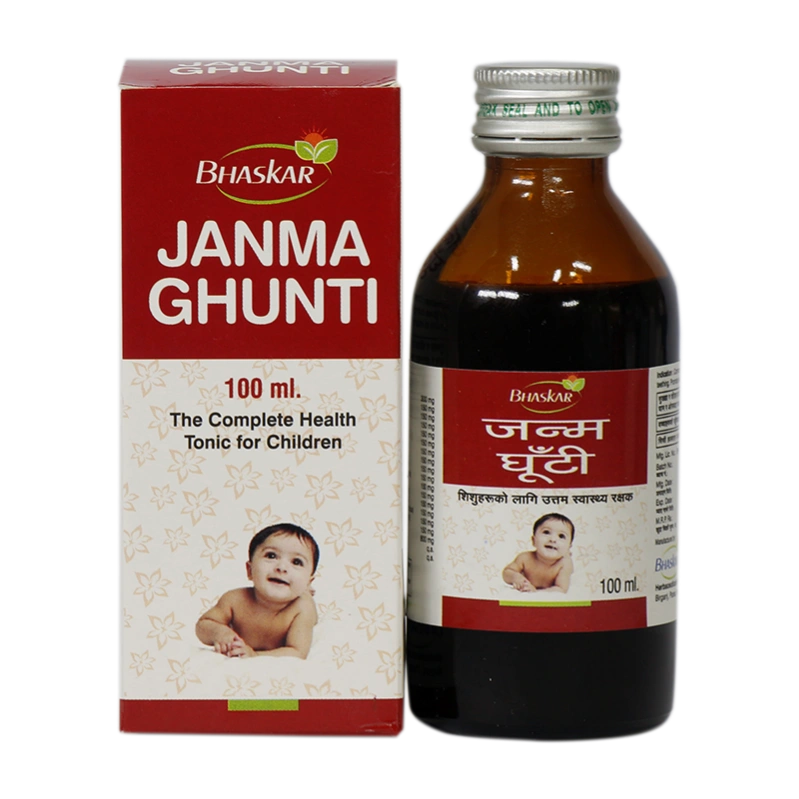 Bhaskar Janma Ghunti Syrup is a classical Ayurvedic formulation with honey for all-round growth and development of babies. It acts as an effective remedy for stomach ailments of the infants arising out of teething and other various reasons. It also helps in the growth process.
