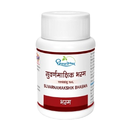 Swarnamakshika is a compound of Copper, Iron and Sulphur having wide range of therapeutic efficacy. It is frequently used in the form of bhasma alone or with other herbomineral drugs mainly in treatment of Jwara, Pandu, Anidra, Prameha, Kshaya etc., and also for Rasayana and Vajikarana purposes.