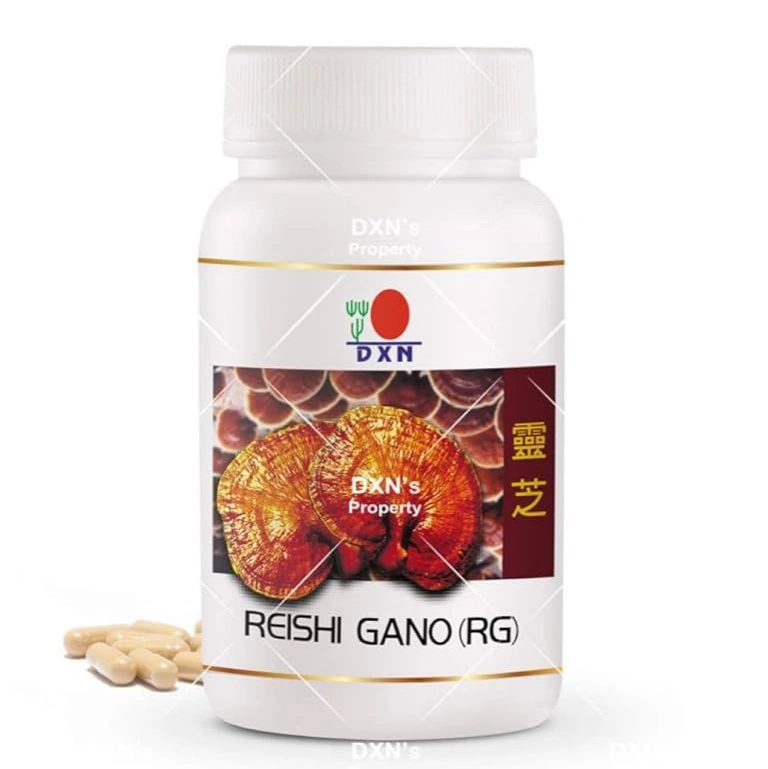 DXN RG is a vegetarian capsule containing Reishi Gano (RG), made from the 90-day-old fruiting body of the Ganoderma lucidum mushroom. Cultivated on an organic farm, it acts as a dietary supplement to support the immune system, promote energy and stamina, and help with detoxification by fighting free radicals and promoting cellular regeneration. It is 100% natural, free from gluten, caffeine, and preservatives, and is often combined with DXN GL (Ganocelium) capsules for a complete Ganoderma regimen.