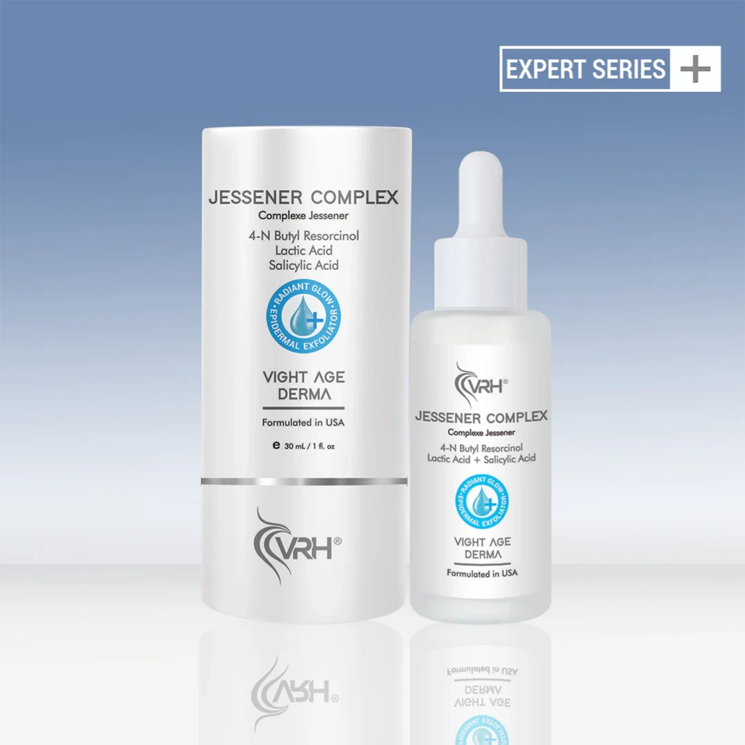 Reveal a brighter, smoother complexion with VRH H₂O Advance Jessener Complex, a powerful exfoliating solution designed to improve skin tone, texture, and clarity. This advanced formula combines Lactic Acid for gentle exfoliation and hydration, Salicylic Acid to deeply penetrate and unclog pores, and 4-N-Butyl Resorcinol, a potent skin-brightening agent known for reducing dark spots and hyperpigmentation.
